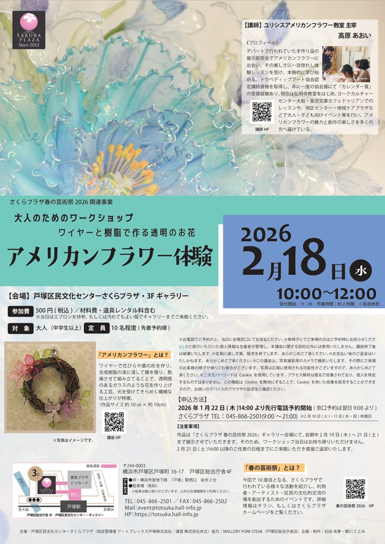 2026年2月18日 さくらプラザ春の芸術祭2026にてアメリカンフラワー体験(*^-^*)