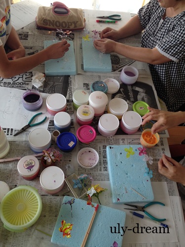 「とても楽しかったです。時間がたつのがあっという間でした。花をつくるときのバランスを考えるのがムズかしかったです。花弁が8枚でこれだとダリヤやしゃくやくは大変なことになりそうだな・・・と作りながら思ってしまいました((笑)